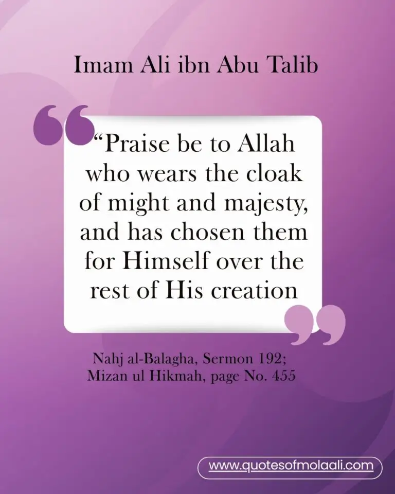 “تمام تعریفیں اس اللہ کے لیے ہیں جو عزت و جلال کا لباس پہنتا ہے، اور جس نے اپنی مخلوق میں سے ان صفات کو اپنے لیے مخصوص فرمایا ہے۔”