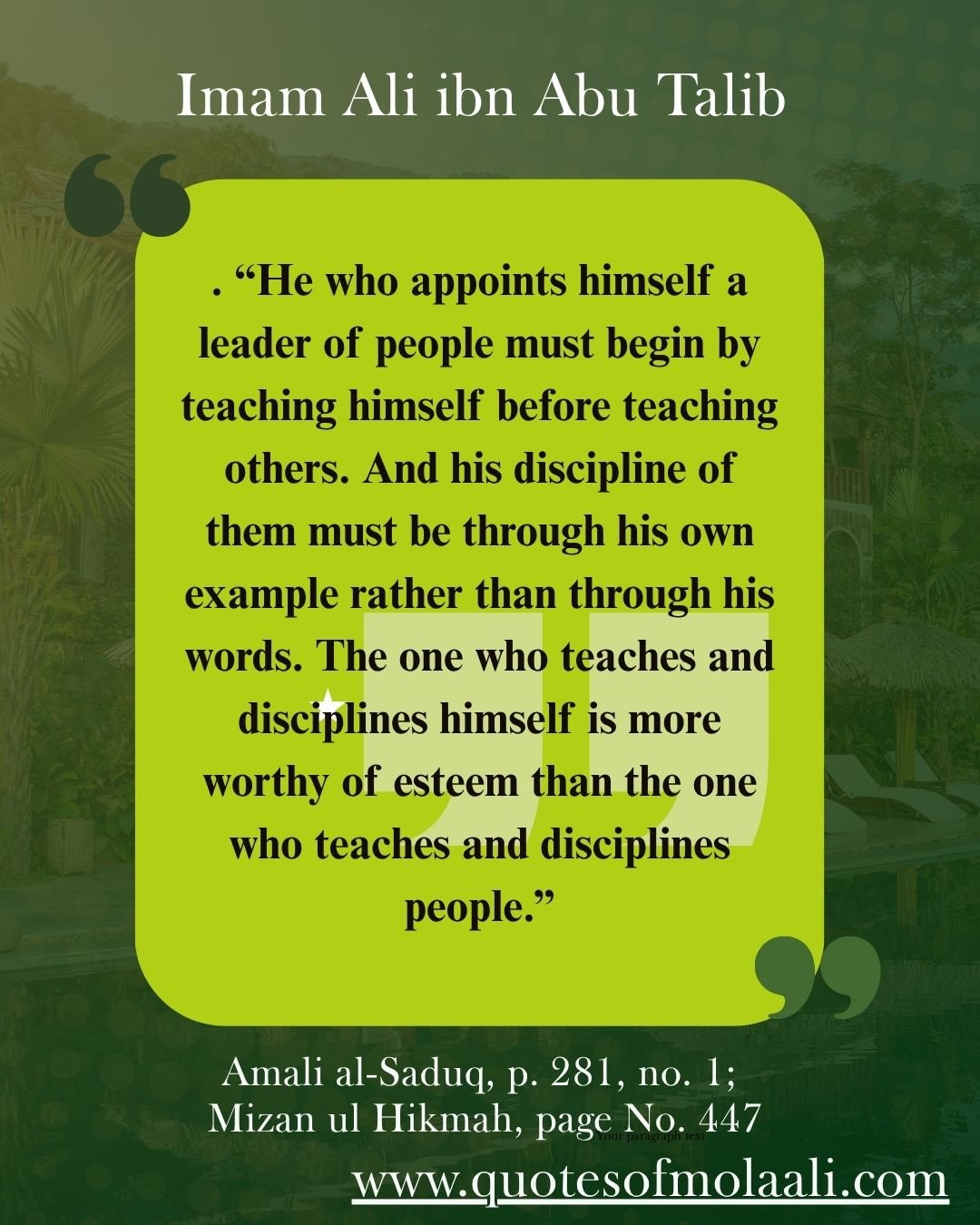 جو شخص خود اپنی تربیت کرتا ہے اور خود کو سنوارتا ہے، وہ اس شخص سے زیادہ قابلِ عزت ہے جو دوسروں کو نصیحت کرتا ہے مگر خود عمل نہیں کرتا۔